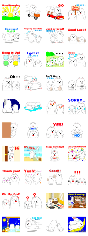 サモエド犬 モフハチロウ2 英語と日本語版 スタンプ画像一覧