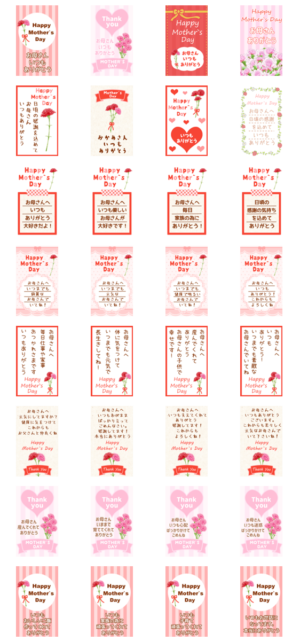 | Happy Mother\'s Day お母さんへ いつまでも健康で明るいお母さんでいてね! | Happy Mother\'s Day お母さんへ いつもありがとう! これからもよろしくね |
