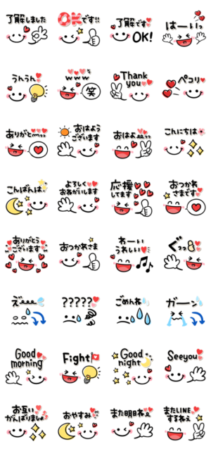 毎日使いやすい!シンプルスタンプ♡ みんな使える無難な日常言葉セットです。 伝わるハンドサインとシンプル顔文字スタンプ♪ かわいい/ハート/家族/カップル/連絡用