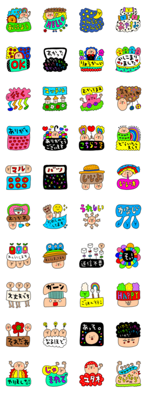riekimのいろいろカラフル。 スタンプに書いてある文字一覧