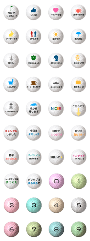 ゴルフ大好き! ゴルフボールで会話したい第三弾。 行く前、ラウンド中、行った後スタンプを重ねて気分を盛り上げよう。 第一弾、第二弾もよろしく!