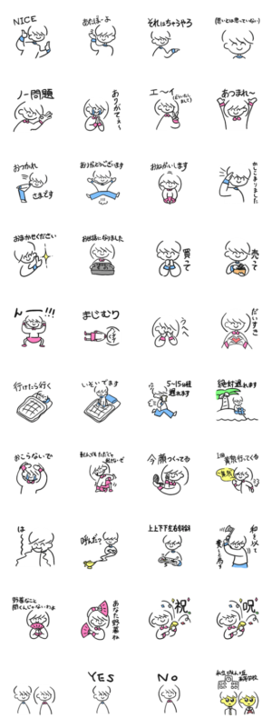 笑顔が素敵な男の子と笑顔が素敵な女の子のスタンプ。みんなが欲しいセリフを集めました。なたろう より発売