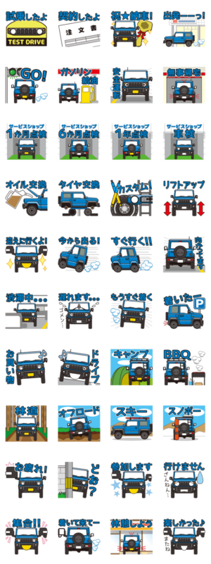 小さく軽い青色4WDカーの車生活スタンプ スタンプ画像一覧