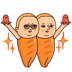 ダジャレになっても息ぴったり。パン/ポテト/野菜/鳥/たぬき/りす/なぞなぞ酢豚/お金ぴえん…他。家族や友達と日常のやりとりに、シュールな大人のダジャレスタンプ。