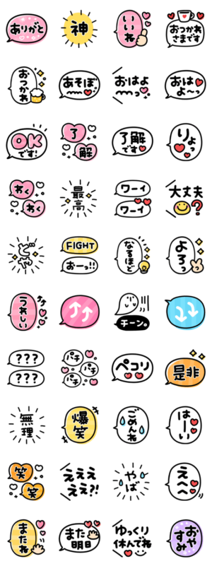 シンプルで1番使える♡かわいい吹き出し スタンプに書いてある文字一覧