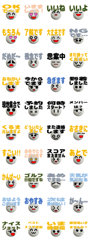 シンプルなので使いやすい。大きい文字で見やすく、ゴルフの打ち合わせや日常のゴルフの会話ができるスタンプです。
