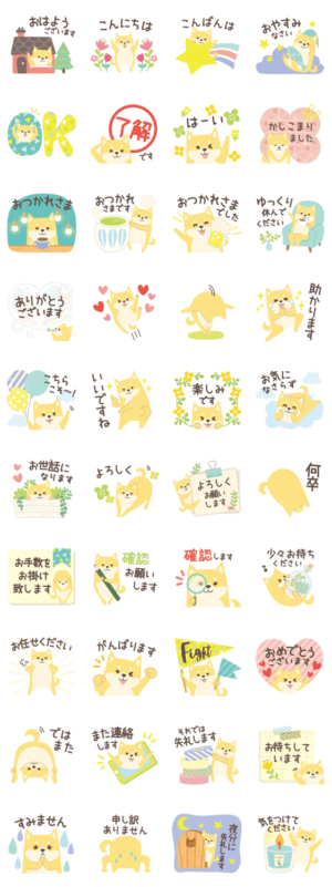 毎日のあいさつに使えるシンプルな犬スタンプ。敬語・挨拶がメインなのでお仕事にも使えます。甘さ控えめな大人かわいい柴犬♪