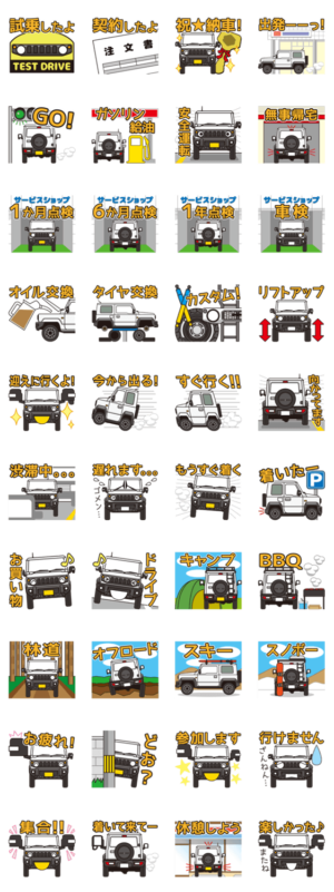 小さく軽い白色4WDカーの車生活スタンプ スタンプ画像一覧
