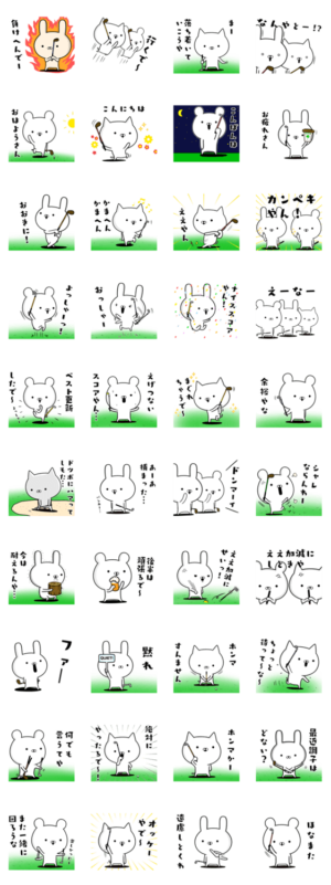 シンプルに挨拶やコースラウンド、コンペ、練習の連絡やお誘いができる基本スタンプ!ゴルファー同士の関西弁を、広くは西日本、関西地方の人にも楽しんで使えるはずです。