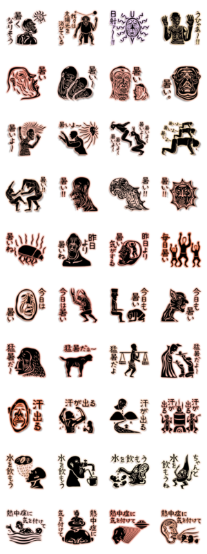 暑い時に使える影絵のスタンプです。春休みが過ぎると気温は上がり、夏休み頃は猛暑となる。秋は残暑が続き、汗は流れて喉が乾く。身体は熱い。そんな時に使ってください!