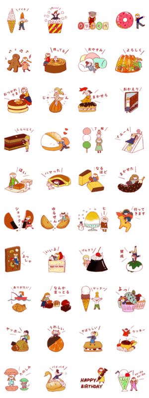 お菓子/スイーツ/おんなのこ/こびと/チョコレート/アイスクリーム/プリン/ゼリー/マカロン/エクレア/クッキー/和菓子kimiko より発売