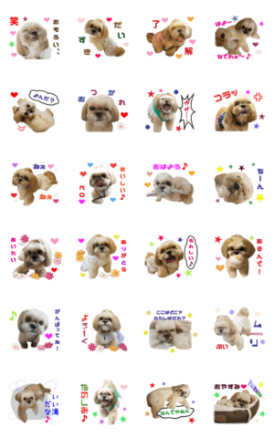 実写版、犬のシーズー×パグ mixのペコちゃんのとってもかわいくて笑える楽しいリアルスタンプです☆
