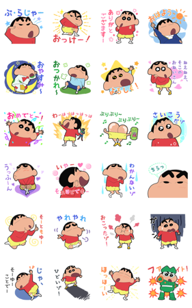 クレヨンしんちゃんの豊かな表情が生かされた、個性的なスタンプです。