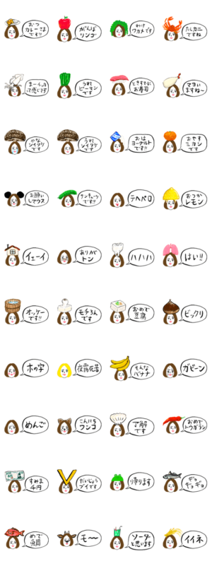【ダジャレ】前髪なしボブ(ブラウン) スタンプに書いてある文字一覧