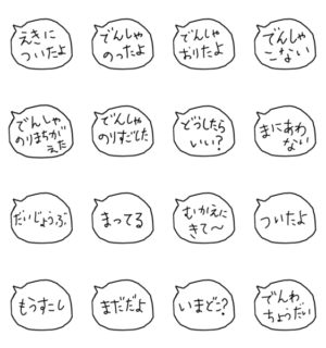 子供が親に送る用のスタンプです。一人で電車に乗る子に。ひらがな、カタカナのみ。pyon より発売