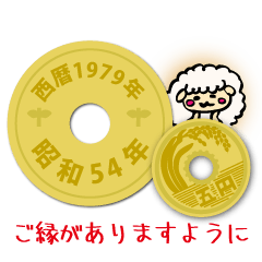 御縁がありますように。西暦1979年(昭和54年)の五円玉のラインスタンプ。干支は未年。1979年誕生年や卒業年、結婚記念など記念の年の方向け。ライン着せ替え版有り。