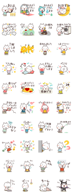 毎日使えるうさぎの大人可愛いスタンプです。日常で使いやすい言葉がいっぱいです♪