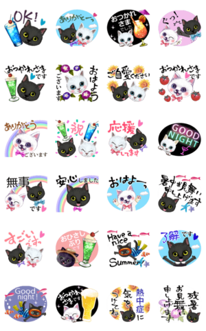 【黒猫&白猫】夏のペットたち スタンプ情報