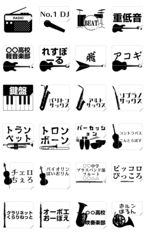 ラジオ 音 楽器 バンド ブラスバンド部 軽音楽部 ピクトグラム シャドウ 邦ロック ギター ベース ドラム キーボード ピアノ 管楽器 弦楽器 ボーカル 音楽 現在この商品は一部のスマートフォン版LINE 10.3.0以上のトークルームでのみ使用できます。動作環境の最新情報はヘルプをご確認ください。Zombby より発売
