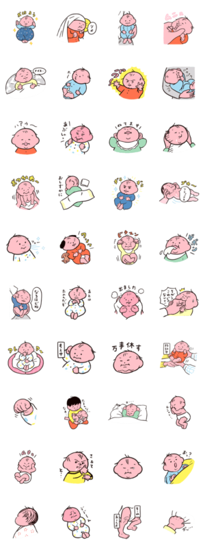 生まれたての赤ちゃんの仕草をスタンプにしました。