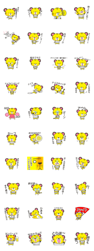 もふっとしたトラが虎の野球チームを応援するスタンプ 虎党の方に使って欲しい。とらほー/乾杯/リクエストなどmm.sansan より発売