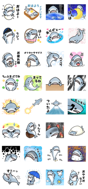 人間のような生活をしているサメの第三弾スタンプです。 使いやすいスタンプがたくさん! たまに海に帰ります。ゆのもりそら より発売