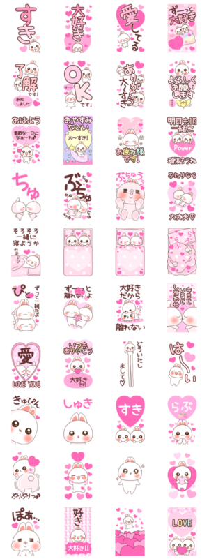 大きくてかなり見やすいおすすめスタンプです。LOVEいっぱいなかわいいうさぎたちで恋人(カップル)・友達・家族に愛を伝えよう♡