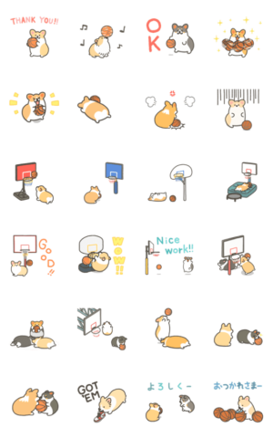 バスケ大好きなコーギーのスタンプです。バスケがしたい毎日にコギの成分が欲しくなったらお使いください。たきむら りゅう より発売