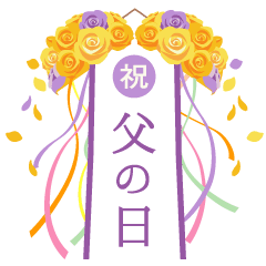 おとうさんに、「いつもありがとう」の感謝を伝えるスタンプです。カーネーションの花束、バラのくすだま、ハートのフラワーアレンジメントなどでお祝い!