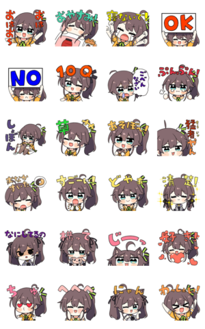 ホロライブの夏色まつりちゃんのスタンプ。同グループの子の中では比較的普通のイメージキャラクターの女の子っぽい見た目なので、知らない人にも送れないことはないか。汎用性が高いメッセージが多めなのも嬉しい。
