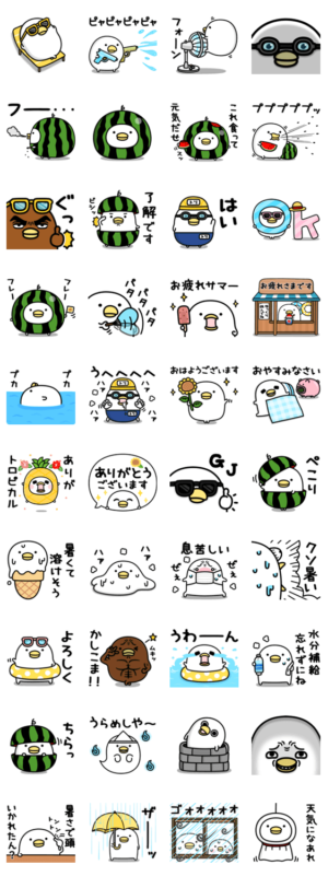 スイカを着たうるせぇトリ君が特に可愛い。夏が過ぎてももう暫く使いたくなります。