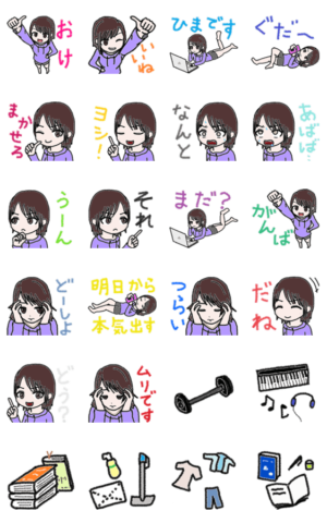 木村わいPの楽曲「何もしてないのに休日が終わった」に登場するイラストのスタンプです。