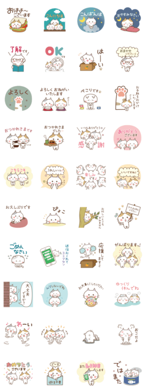 ねこキャラクターの敬語スタンプです。お友達にはもちろん目上の方にも送りやすいスタンプです。