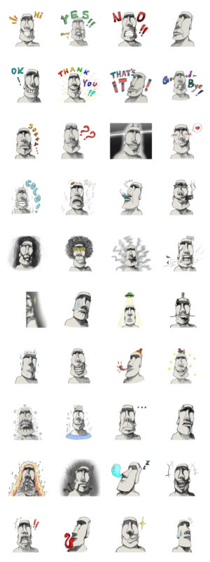 イースター島のモアイさんは、誇張した感情であなたに伝えたい! モアイさんの朦朧な目を使う、あなたの気持ちをお友達に伝えよ!