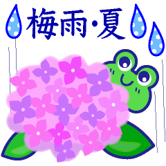 梅雨/雨の日/雨降り/かえる/あじさい/紫陽花/暑い/夏/初夏/日常/挨拶/丁寧/でか文字