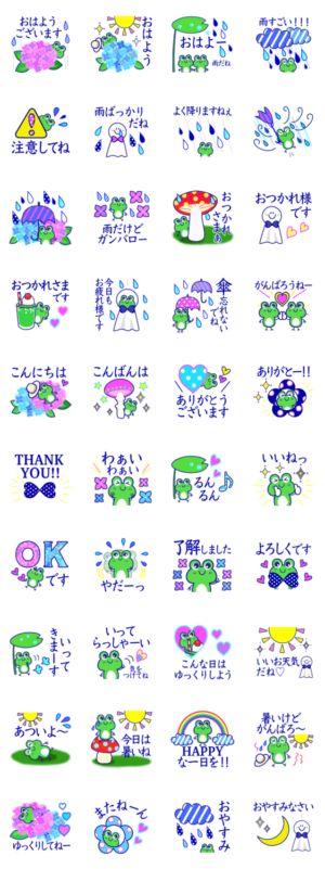 カエルさん。【お天気・梅雨・夏】 スタンプ画像一覧