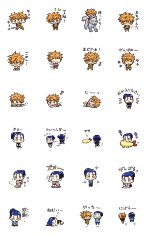 まんが 異界譚里見八犬伝のキャラクターのスタンプ第二弾です。 ちいちゃい信乃と荘助の使いやすいスタンプだよ!うちはら より発売