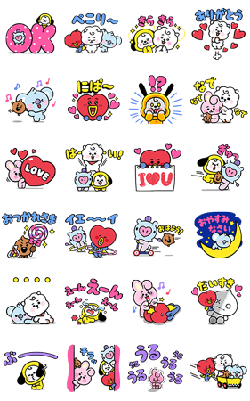 子供の頃のかわいくて小さいBT21がスタンプで登場!やんちゃで愛くるしいBT21がとてもかわいくて和んじゃう☆キュートなBT21たちに癒されトークをにぎやかに楽しもう!BT21 より発売