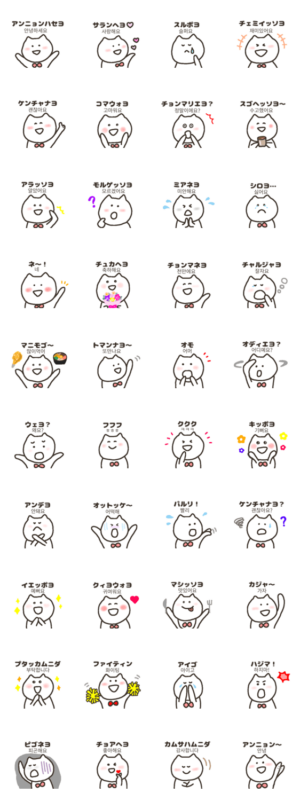 ねこまると覚える韓国語!日常会話 スタンプ画像一覧