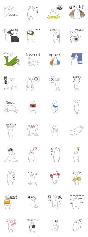 なんて言えばいいか分からないやつのスタンプ。猫のような形はしているが、猫ではなさそうだ。夜逸 より発売