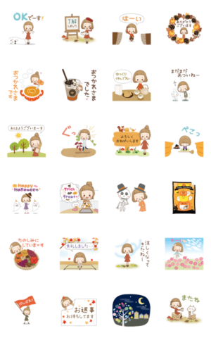 前髪短めな女の子の動くスタンプ第12弾は「秋のゆる敬語」です。 ハロウィンや紅葉など、秋に使える季節感たっぷりなスタンプです。 毎日の会話にどうぞ。かりん より発売