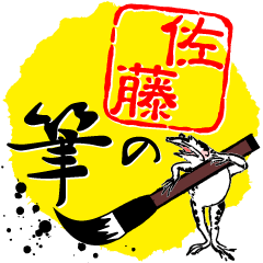 「佐藤」さん専用落款付き。鳥獣戯画の蛙がしたためし書。デカ文字シンプル使いやすいワードをチョイス。かえる、カエル、習字、筆、丁寧、敬語、落款、お名前、苗字。