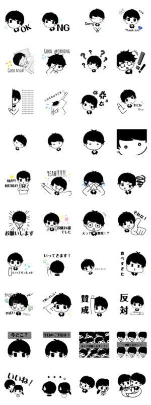 うちのももか(ちょっとほのか)のシンプルでモノクロ風なスタンプ!がんばって描いた、らくがきです!!ボーイッシュ・ショート・女子・中学生・姉妹・白黒