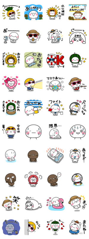 しろまるの夏に使えるスタンプ最新2021年verです。【作:いしいともこ】