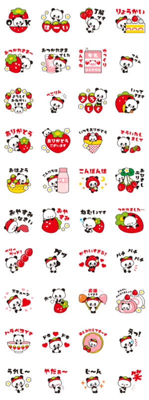 レトロぱんだ第6弾は、苺いっぱいのスタンプです♪【日常会話/敬語/いちご】
