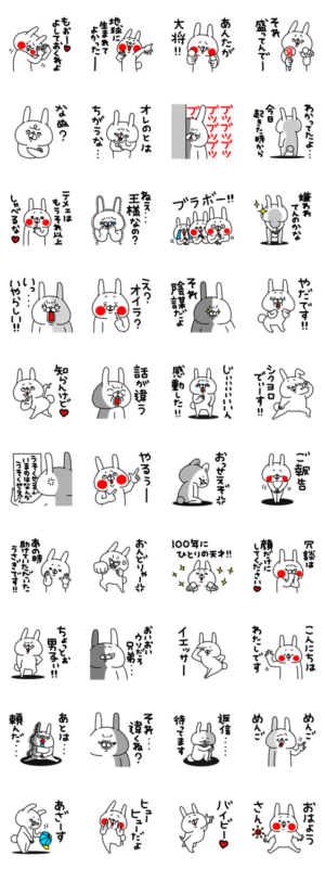 全力うさぎ絶妙にダサい編 スタンプに書いてある文字一覧