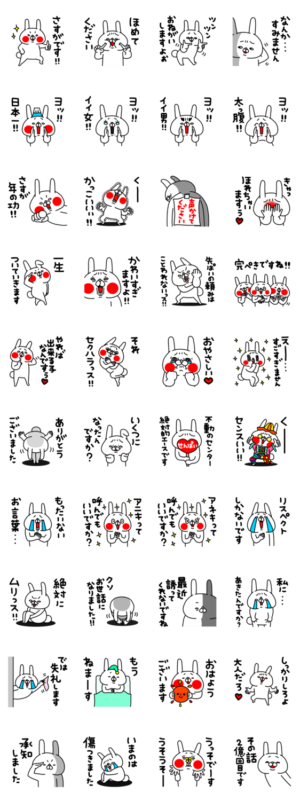 全力うさぎ名前なし編。全力でうざい全力でおちょくるあざとかわいい甘え上手な子分肌兎のヨイショが止まらない。先輩や上司に使える末っ子年下感満載の太鼓持ちスタンプ。