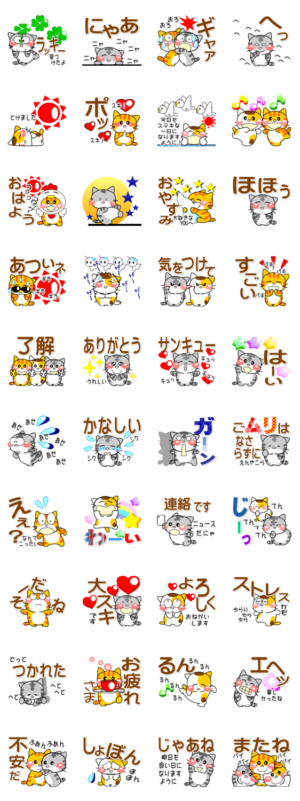 毎日楽しく使える可愛い3匹の猫達のでか文字と小文字のちょっとうるさくて笑えるスタンプです。ohausa より発売
