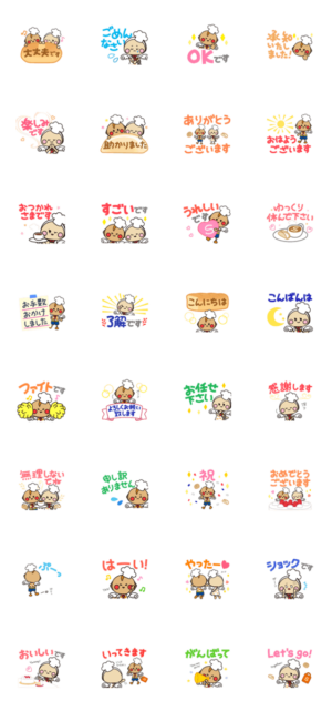 サニくんオムちゃんの日常スタンプ登場です♪ デカ文字で大きく見やすいスタンプで気持ちを伝えてね!