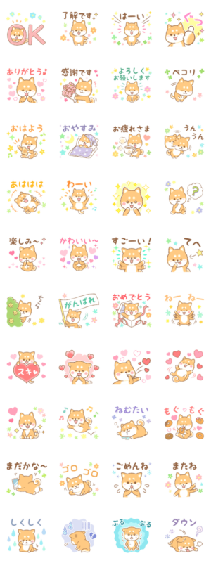 ふんわり優しいタッチで描かれた柴犬のスタンプです♪セイコウ より発売